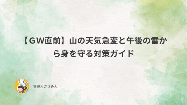 登山ニュース 【GW直前】山の天気急変と午後の雷から身を守る対策ガイド 2026年4月25日 管理人ささみん こんにちは、ささみんです! GW直前です。4月29日からの連休、山に行こうとしている方も多いと思います。 今日は天気の話をしま …