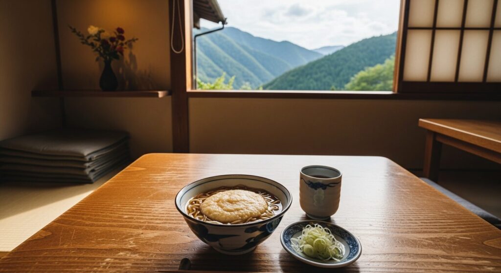 高尾山口駅周辺には老舗の手打ちそば屋が軒を連ねており、「高橋家」「栄茶屋」など創業から長い歴史を持つ名店が今も人気を集めています。自然薯を使ったとろろそばは、粘り・風味・香りが格別と評判です。