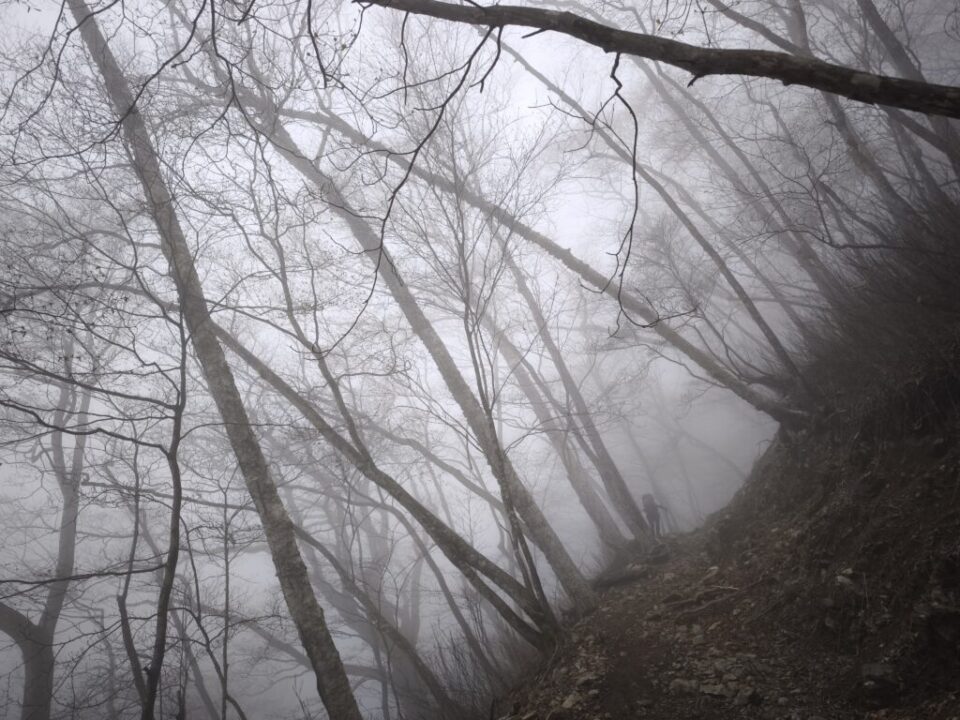 尾根に出ると一瞬晴れ間が!🌞 …少し下ると雲の中🌥