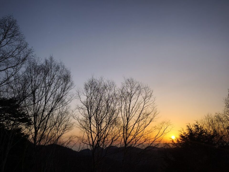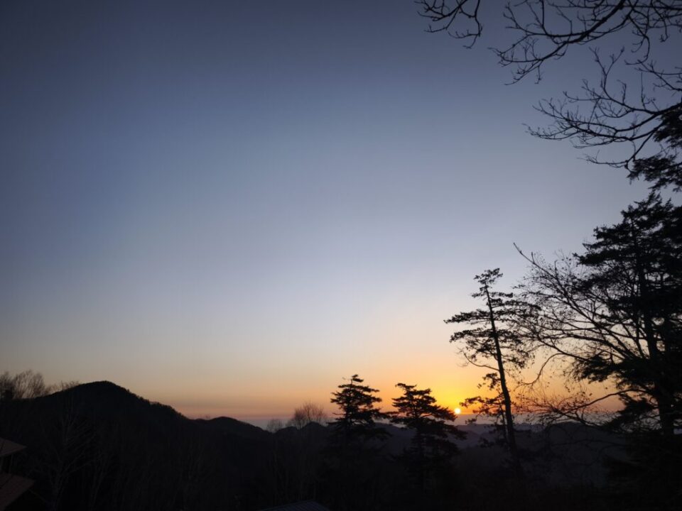空がオレンジに染まって、稜線の向こうから太陽が昇ってくる。雲取山荘のあるポジションから眺める日の出は、山頂に登らなくても十分すぎるくらいの景色でした。